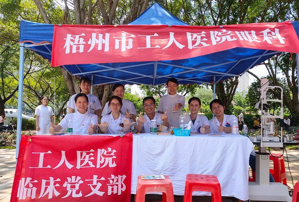 为积极响应第24个全国“爱眼日”活动,梧州市工人医院眼科于6月15日在潘塘公园开展主题为“共同呵护好孩子的眼健康,让他们拥有一个光明的未来”的爱眼义诊活动。