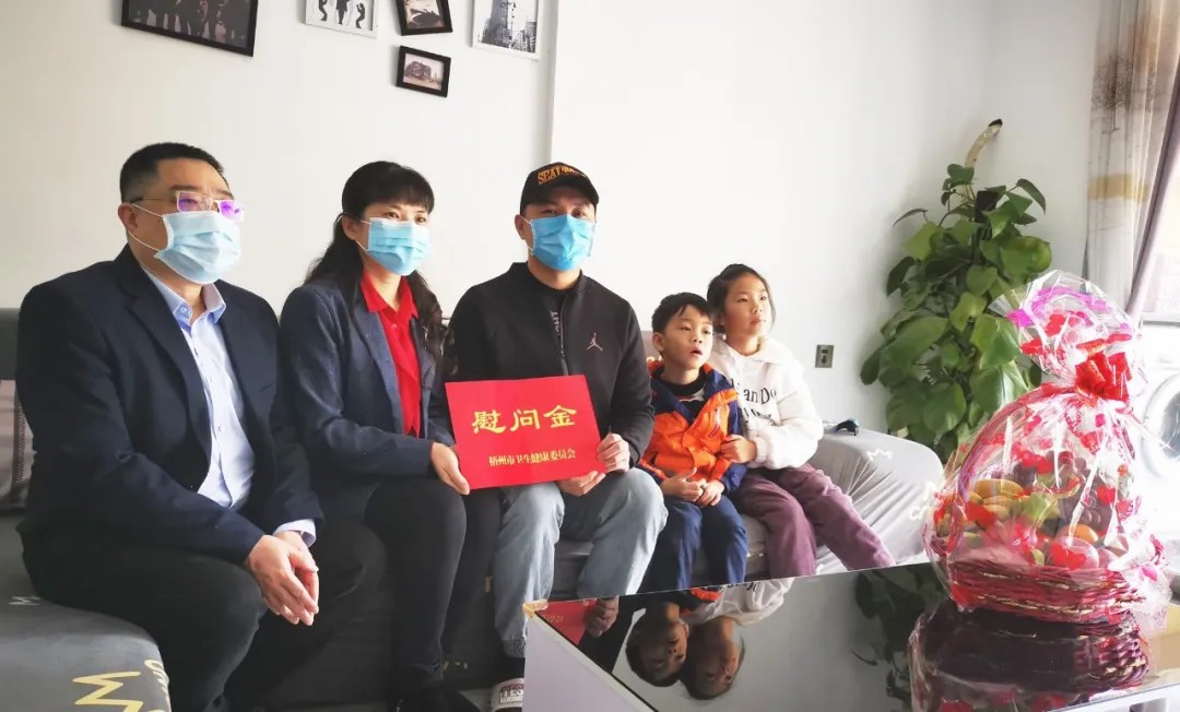 近日,梧州市领导钟畅姿、谢凌云、黄振饶慰问了市工人医院驰援湖北医疗队员黄卓、江逸峰、欧日莲、覃金芳等家属,倾听他们的心声,并帮助他们解决生活困难。市卫生健康委领导李传杰、李论,院领导黄国武、宁金沛、姜洪等陪同慰问。