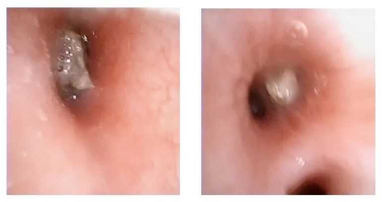 (左图为堵塞支气管的大直径异物,右图为左肺下叶小异物)